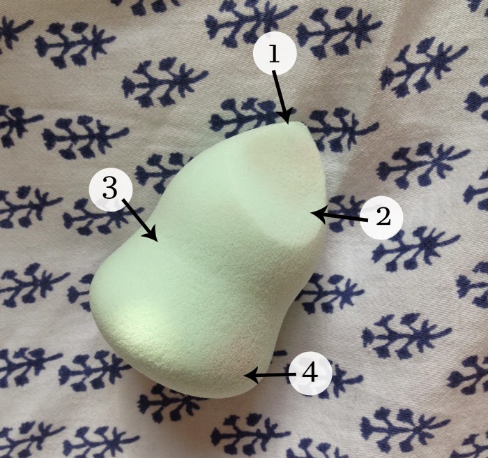4) The rounded bottom for blending foundation in larger areas (it also allows the sponge to stand