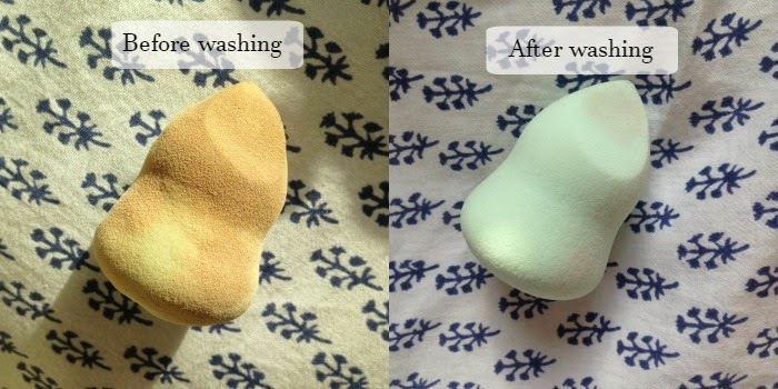 One thing that concerned me with a sponge was how dirty it looks after using it. I have to admit that I don't clean my brushes as often as I should but it's a lot easier to notice a dirty sponge than it is a brush so I would probably want to clean this daily. After all, no-one wants to see a foundation covered sponge just chilling on a pretty white dressing table do they? So to wash it, I simply rinsed with hot water and a bit of shampoo (the same way I'd clean my brushes). You can see below how easily the foundation comes off it.