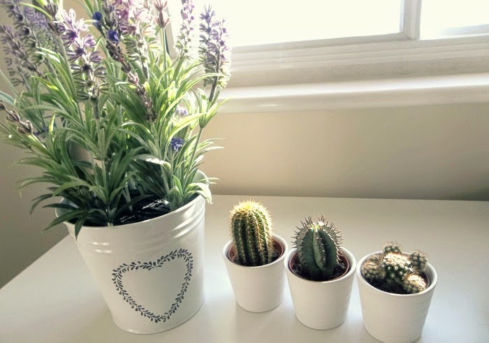 First up is some pretty little foliage in the form of cacti and a big, artificial pot of lavender.