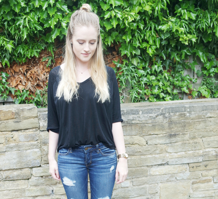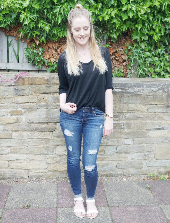 Erm what? Another fashion post from me? Maybe these will start to become a regular over here - who knows! Anyways, I was recently sent a gorgeous pair of jeans from American Eagle Outfitters, who have just launched in the UK, so thought I'd force my sister to play photographer and get posing again. This time it's a much more relaxed look as I'm hardly adventurous when it comes to fashion (apologies for the greasy top knot and dishevelled mother of dragons style hair - wanted an extra hour in bed it to match the relaxed outfit didn't I?)