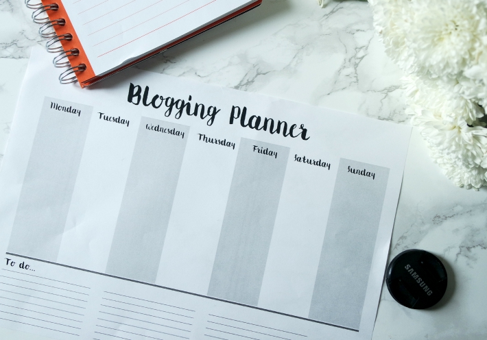 I really like visualising my weekly/monthly schedule so a diary or a blogging planner (like the one in the picture above) can be really helpful. I actually made mine myself but you can buy them from Etsy for really cheap!
