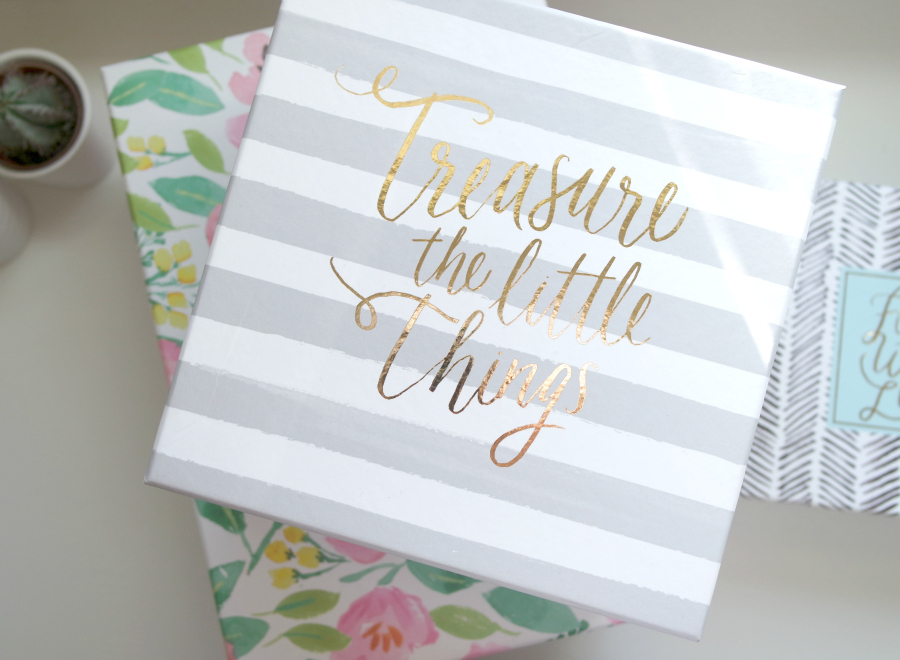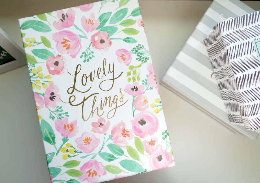 Desk storage needs to be compact and practical but it definitely doesn't need to be boring. Proven by these beautiful boxes from Homesense. When I strolled in and saw the entire back wall filled with these boxes, I fell in love. They're just so pretty yet still super useful. And they all have cute little messages on them in swirly, gold writing. Swoon.